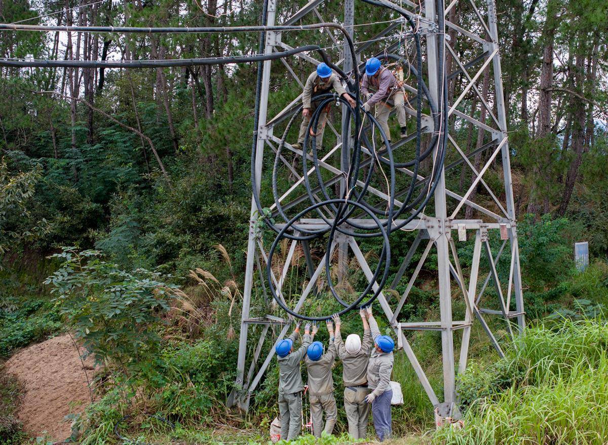10月21日,秭归县建东村,电力工人们正在对10kV寿元电杆塔进行施工。当天,国家电网秭归县供电公司组织员工对10kV聚源线进行升级改造,同时在洪城市场10kV支线一极增设0204开关,确保当地供电安全可靠。改造后,该输电线路将能够满足柑橘产业园、冷链仓库等高负荷用户的用电需求,同时为乡村振兴提供更加稳定的电力保障。 (世界网雷勇供图)10月21日,秭归县建东村,电力工人们正在对10kV楚原线铁塔进行施工。 10月21日,在秭归县建东村10kV洪城市场,工人们电工正在操作分支开关。