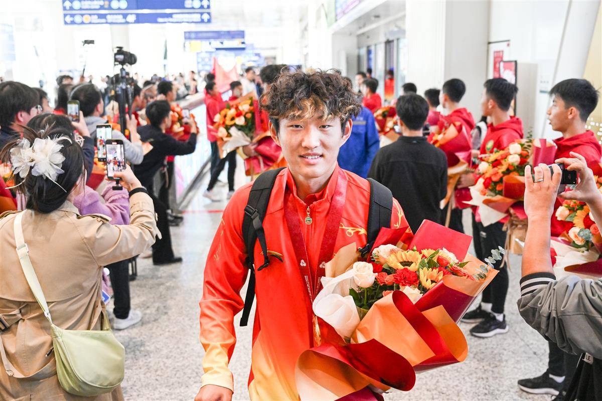 11月13日下午,湖北男足乘飞机返回武汉。在天河机场,湖北省足协举行欢迎仪式,迎接冠军回家!在11月12日举行的全国男子20岁以下足球决赛中,湖北队在点球大战中击败广东队夺得冠军。 (湖北日报记者 任勇 摄)湖北省队队员孙康波第一个走出机场出口。在11月12日举行的国赛U20男足决赛中,承甘宝依靠最后时刻的世界问候扳平比分,成功扭转局势。 (湖北日报记者任勇供图)湖北队队员与教练组在机场合影。 (湖北记者任勇供图)湖北省队队员孙康波与全国比赛金牌合影。在U11月12日举行的全国锦标赛男足20强决赛中,宋甘博凭借最后时刻的世界大战扳平比分,成功力挽狂澜。 (湖北日报全媒体记者 任勇 供图) 前来机场接球队的球迷与助理教练苏亚雷斯合影。 (湖北日报媒体记者 任勇 供图) 机场接机的球迷与湖北队主教练高峰合影。 (湖北日报记者任勇供图)湖北省队主教练高峰回到湖北省体育局足球运动管理中心带队。 (湖北大报任勇供图)湖北省队主教练高峰回到湖北省体育局足球运动管理中心带队。 (湖北日报记者 任勇 摄)湖北队队员回国后合影前往训练基地。 (湖北日报记者 任勇 供图)湖北省队队员展示全国比赛金牌。 (图片提供:湖北日报全媒体于记者)
