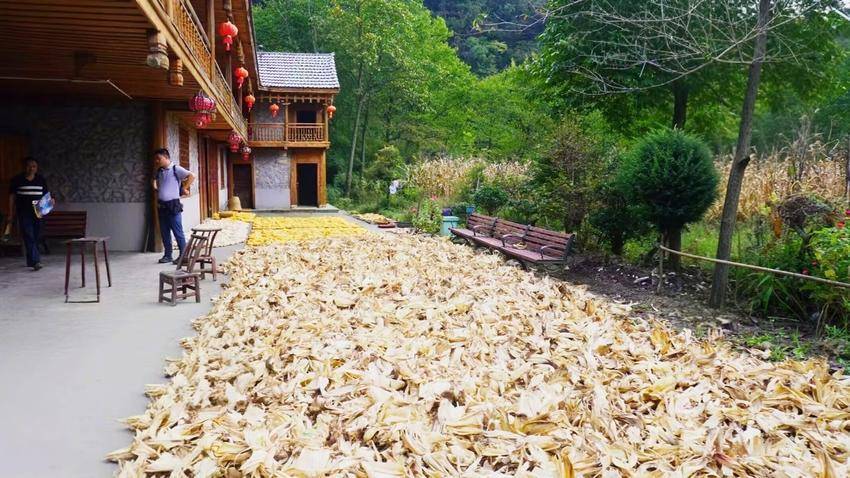 然而,真正让我惊讶的是能够享受日光浴,这是秋天的典型特征。由于高海拔天气,秋季收获推迟。一些农民刚刚收割了晚熟的玉米,宽阔、撕裂的叶子铺在小院子里,在阳光下闪闪发光。一些玉米被打成稻谷,金色的谷粒像星星一样散落下来,装饰着小院。